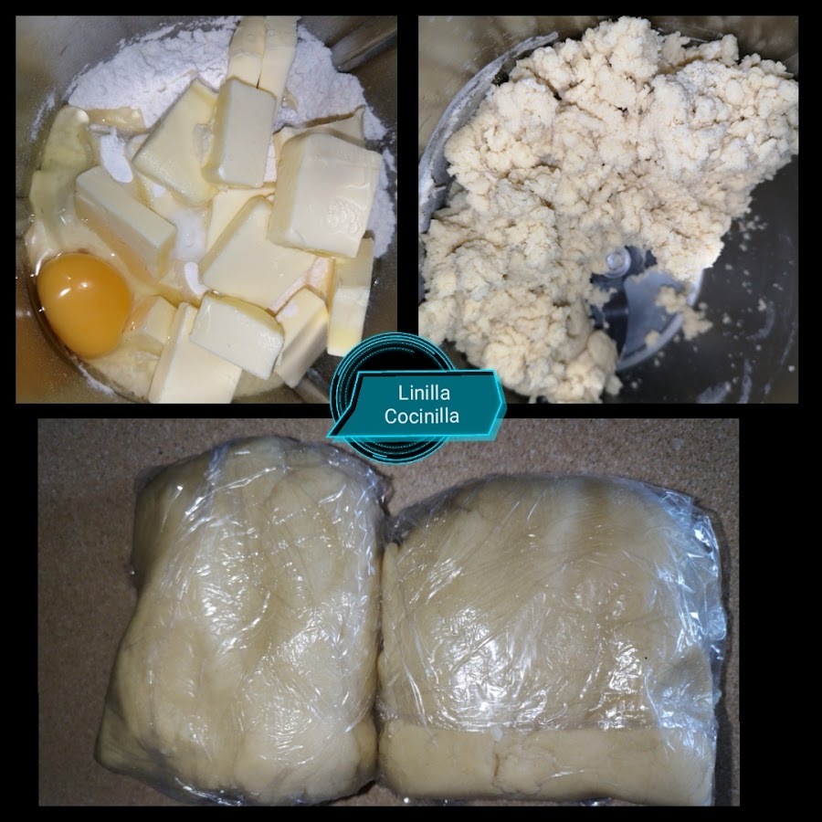 1. Ponga todos los ingredientes de la masa en el vaso y mezcle 20 seg/vel 6. Retire la masa del vaso, forme un bloque y envuélvalo en film transparente. Deje reposar 15 minutos en el frigorífico.