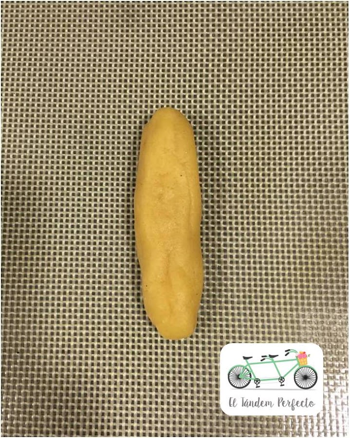 Una vez tenemos la masa hecha, precalentamos el horno a 170º con opción arriba y abajo y sin ventilador. Cogemos una bandeja de horno y una lámina de silicona o teflón para ir colocando nuestros dedos encima.
