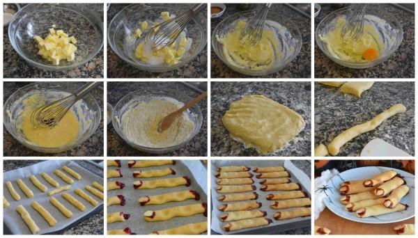 Dificultad: fácil Raciones: 12 – 15 galletas Tiempo: 30 minutosIngredientes de las galletas dedos de bruja: