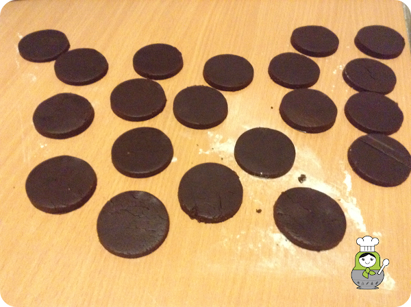 En una superficie ligeramente enharinada, extendemos la masa con la ayuda de un rodillo hasta que tenga un grosor de 1 cm más o menos y cortamos las galletas con una forma.