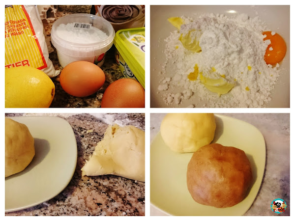 3.- Dividimos la masa en dos porciones iguales y formamos dos bolas con la masa. Mezclamos una con el cacao en polvo y volvemos amasar hasta que tenga un color uniforme. A la segunda bola le añadimos el azúcar de vainilla y la ralladura de una naranja o limón. Igualmente amasamos la masa.