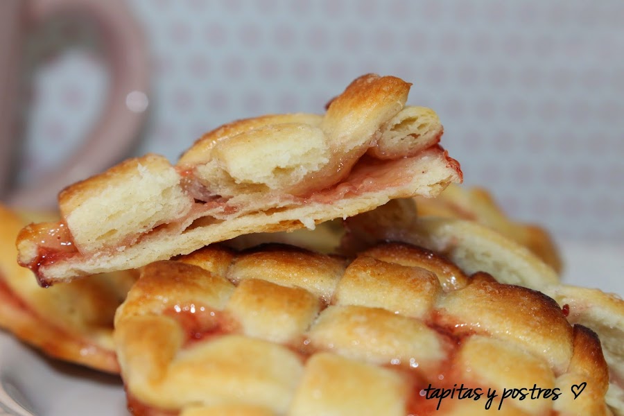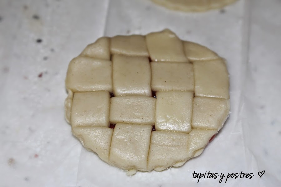 Desde que vi esta receta en el blog de María Lunarillos, me dije "tengo que hacerla". Parece complicada de hacer, pero cuando te pones a hacerla ves que solo es entretenida. No hay que ser muy mañoso, pero si tener un poquito de paciencia para elaborar el enrejado.