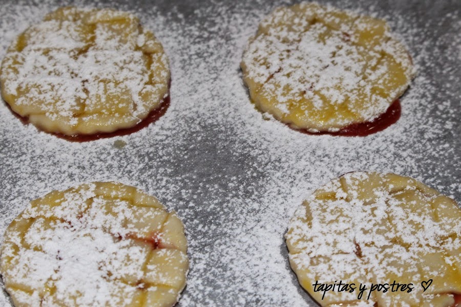 Y le espolvoreamos azúcar glass por encima. Las horneamos unos diez minutos, o hasta que se doren. Espero haberme explicado bien. Son fáciles de verdad.