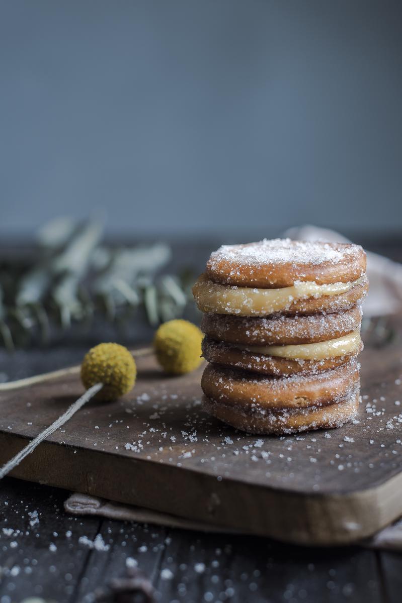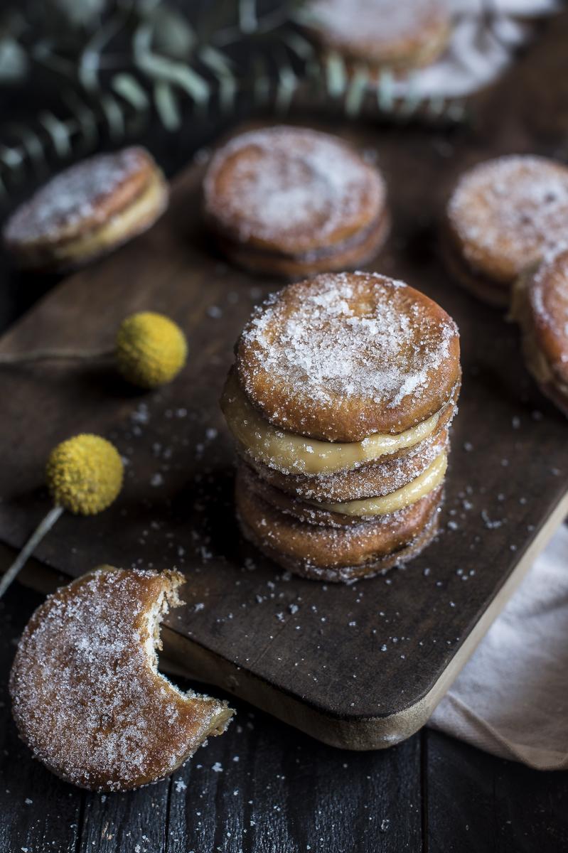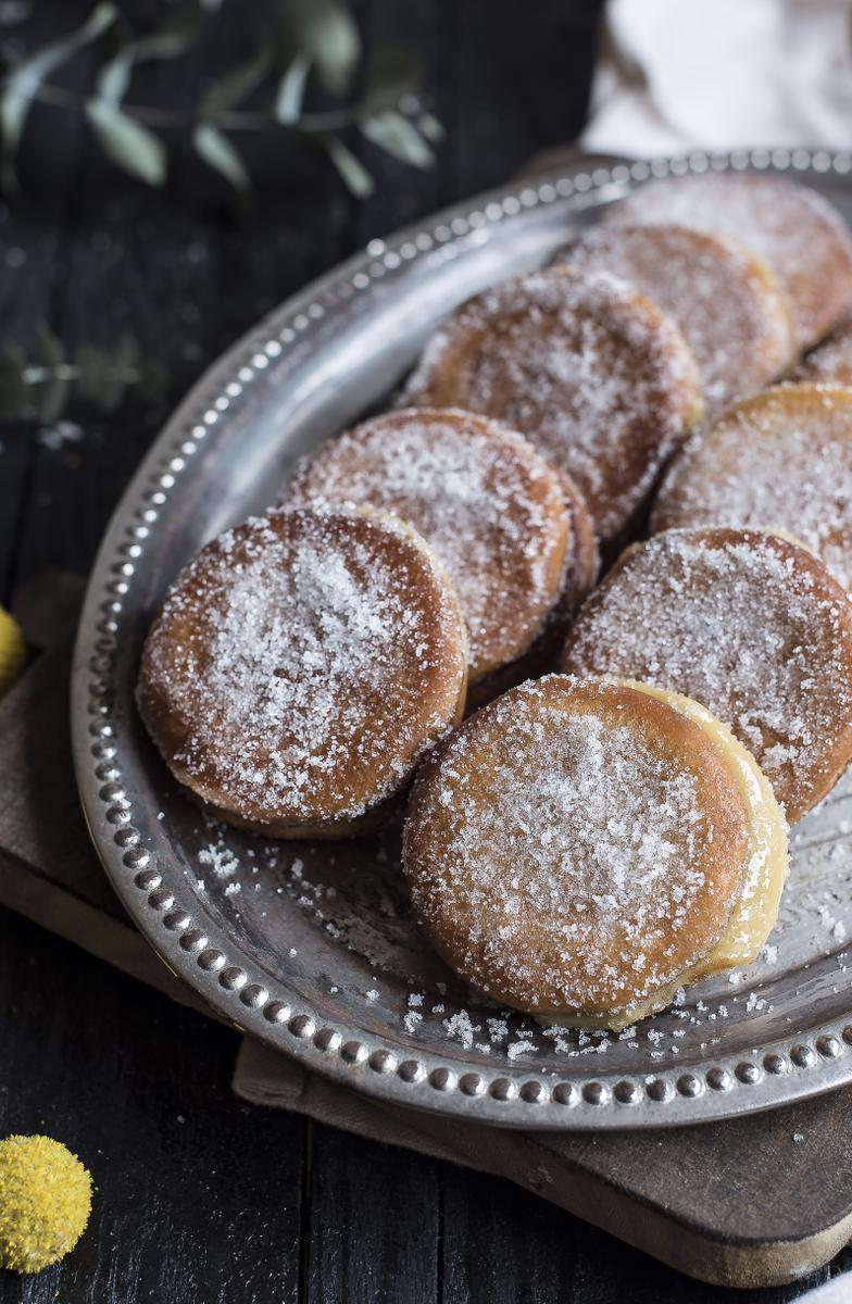 Para la receta de hoy hemos preparado las galletas fritas rellenas de crema ¡crema de natillas mmmmm! sólo de ver las fotos ya estoy babeando otra vez ¡¡agggg!! Fáciles y deliciosas estas galletas no tienen ningún tipo de complicación, en mi casa se solían hacer con un preparado para flan pero podéis rellenarlas de lo que más os guste; chocolate, dulce de leche, caramelo, o incluso hacer una versión para diabéticos con natillas caseras sin azúcar y sólo espolvoreadas de canela ;)