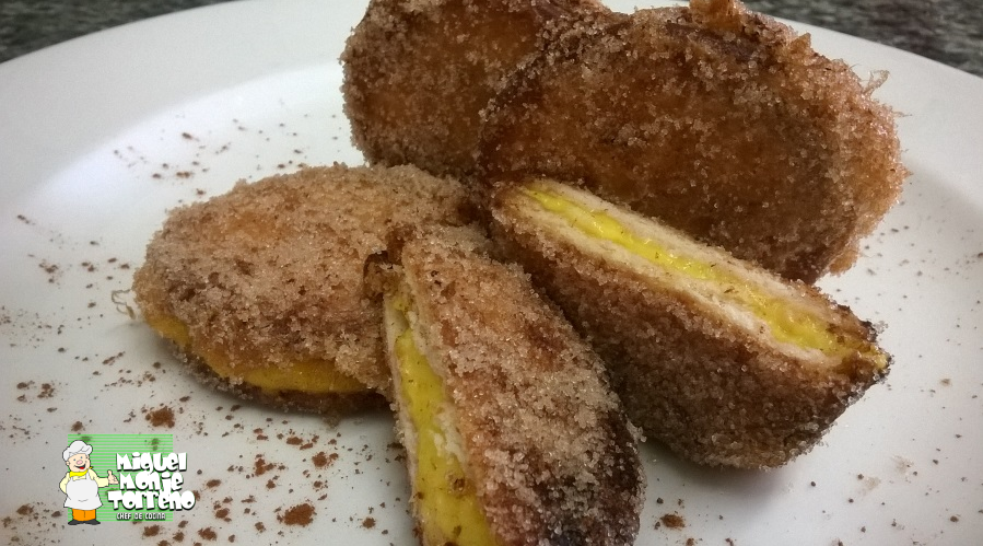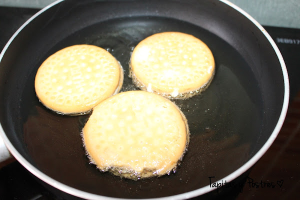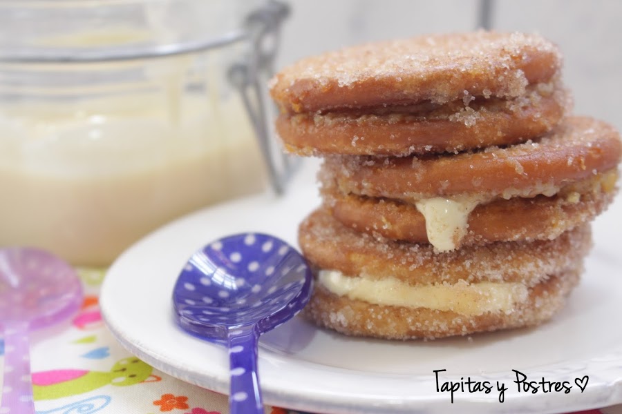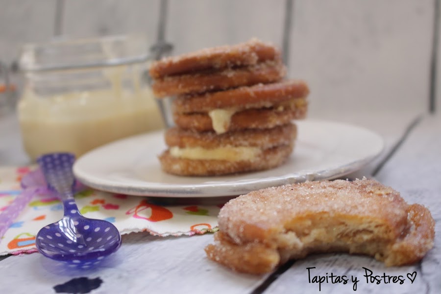 Yo las he rellenado de leche condensada, pero admite cualquier relleno: nocilla, flan, mermelada, cabello de angel... Lo que más os guste.