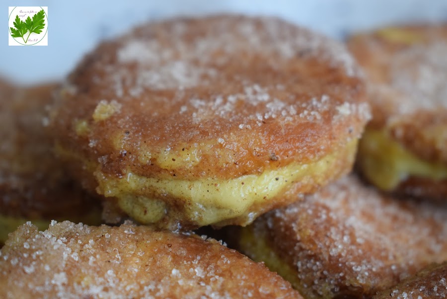 Coje una galleta y cubre con una cucharada de flan, sé generosa, pon otra encima y aprieta un poquito para que se unan bien. Pon en un plato la leche y en otro los huevos batidos. Moja las galletas en leche y después en huevo. Deben quedar bien mojadas pero evita que se partan. Fríe en abundante aceite caliente. Ve pasándolas a un plato con papel absorvente para evitar el exceso de aceite.