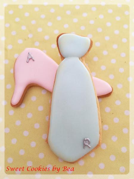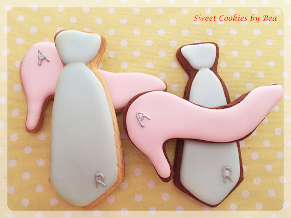 Unos zapatos y corbatas, cada unos con el color correspondiente de como han lucido los novios esos complementos, algo sencillo que van cada uno con la inicial de los novios en plateado.