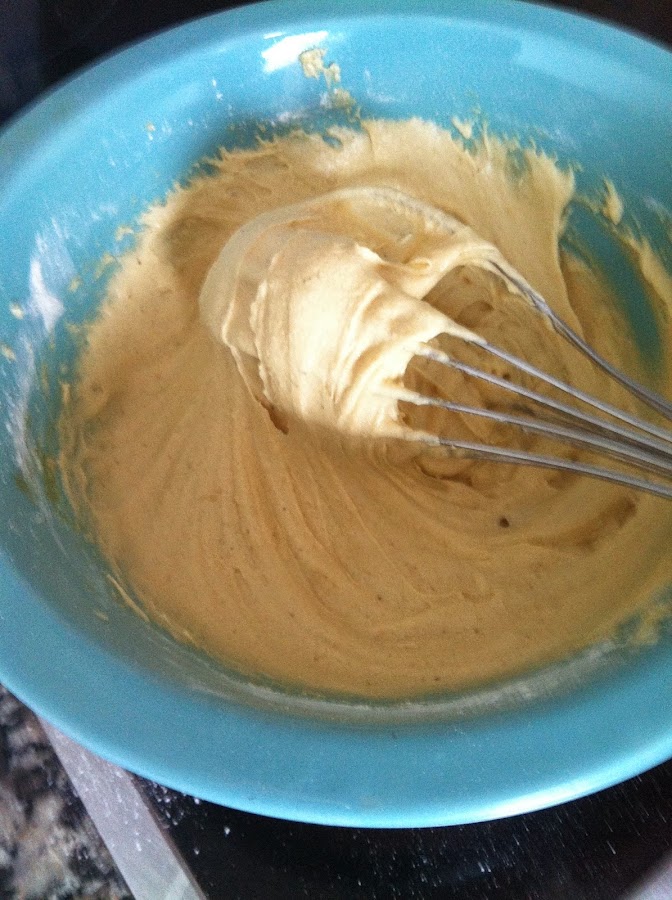 Batimos el huevo con la vainilla, incorporándoselo a la mezcla anterior, seguimos batiendo y agregando poco a poco la mitad de la harina tamizada, y seguidamente la leche entera, finalizando con el resto de la harina.