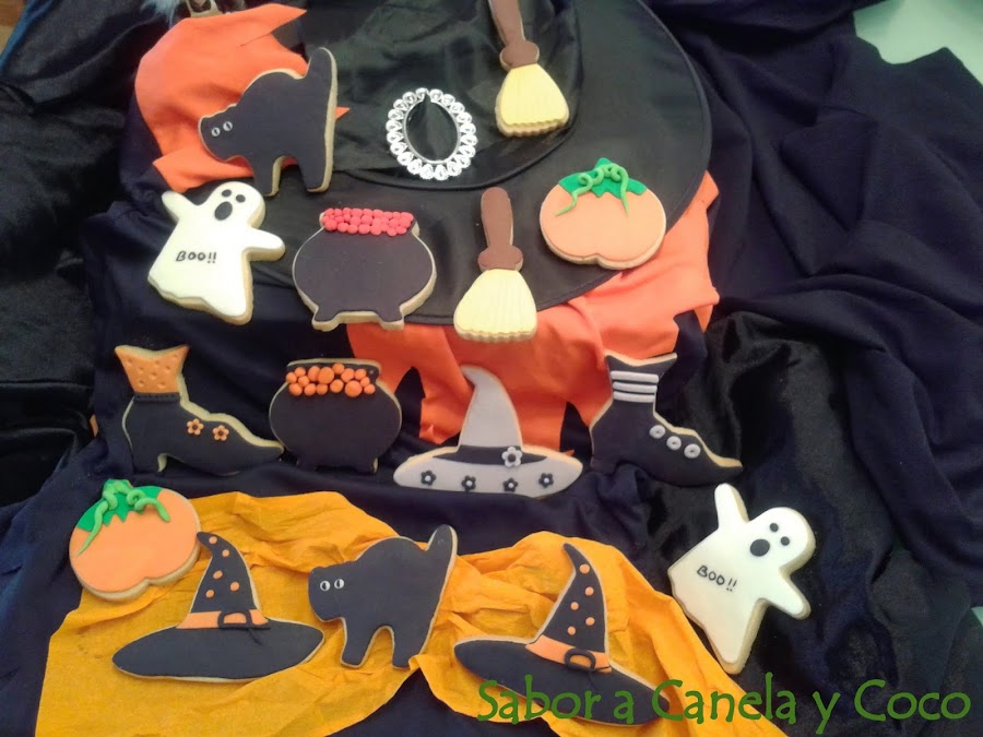 Gallatas Halloween fondant Os quiero enseñar mi trabajo de hoy: galletas de halloween decoradas con fondant. Nos lo hemos pasado en grande mis pequeños y yo. Galletas BOO halloween fondant Galletas calabazas halloween fondant Galletas brujas halloween fondant Galletas buho halloween fondant Galletas escoba halloween fondant Había guardado unas cuantas para decorar mañana, pero no se ...