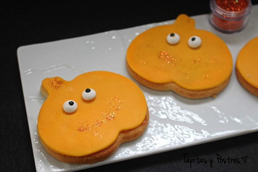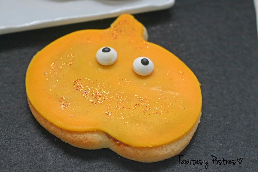 Este año he `preparado con ellos unas galletas de Halloween con la masa de galletas de mantequilla y un fondant naranja que compré ya hecho.