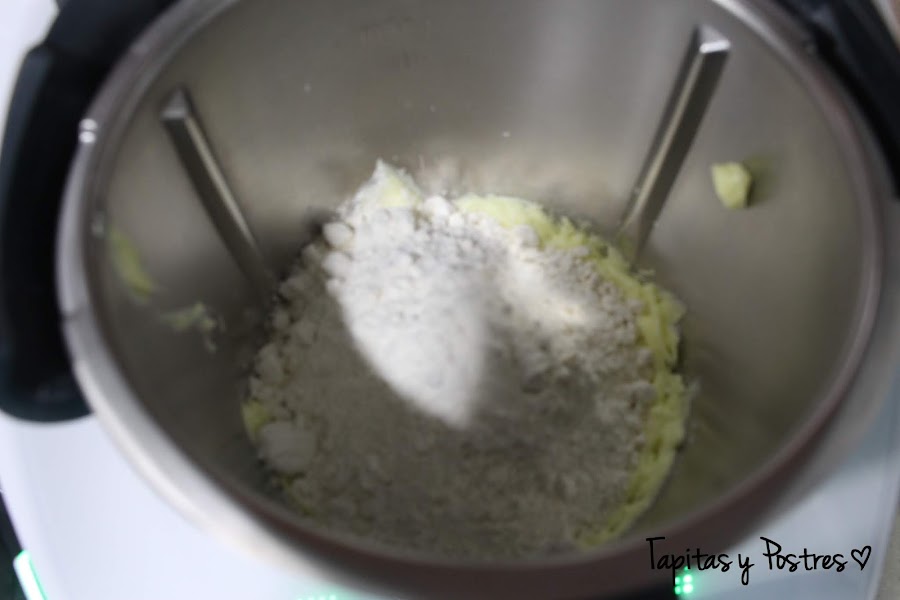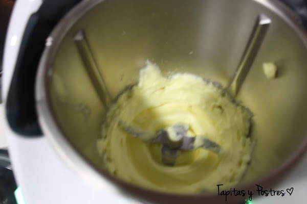 Montamos la mantequilla a temperatura ambiente junto al azúcar en la thermomix 1 minuto a velocidad 3.