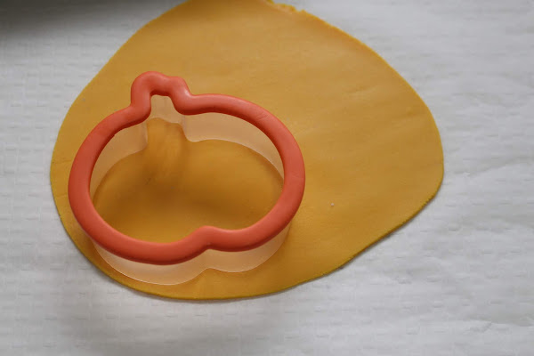 Una vez frías, estiramos el fondant muy finito y con el mismo cortapasta hacemos las calabazas en fondant para cubrir.