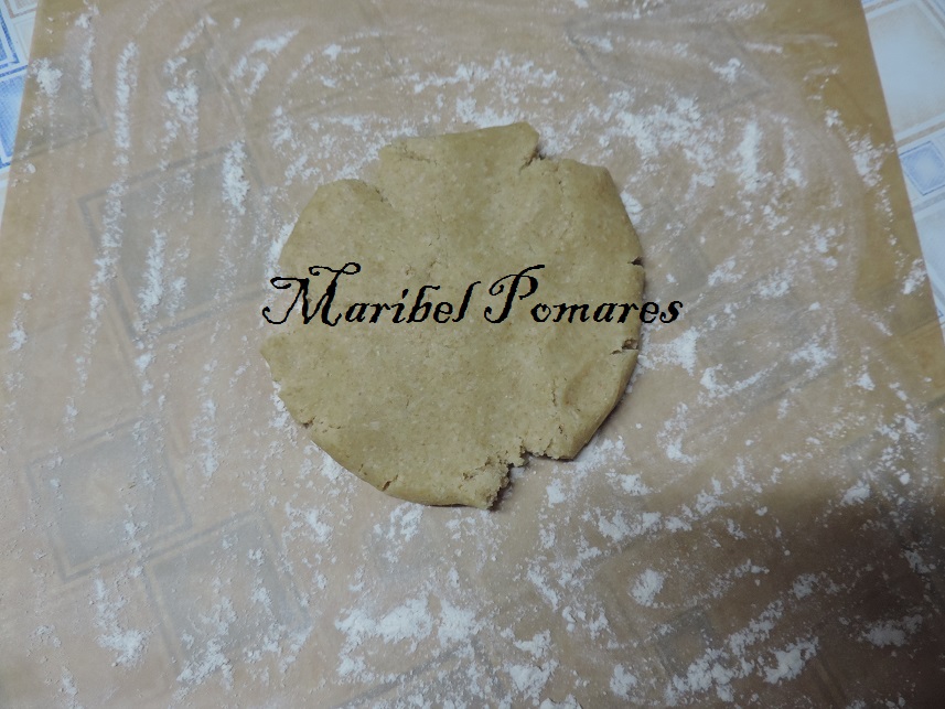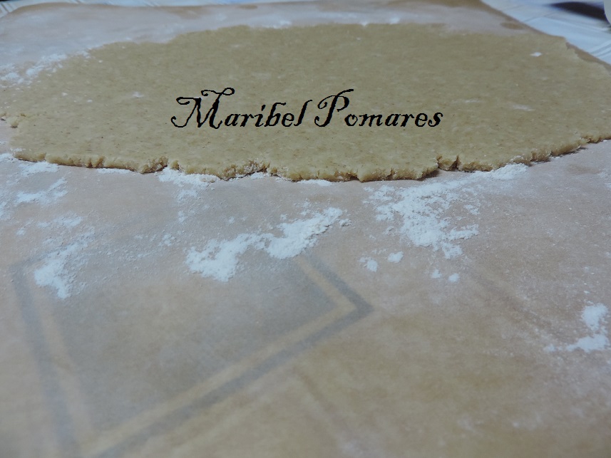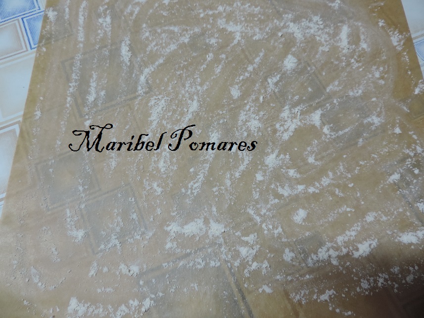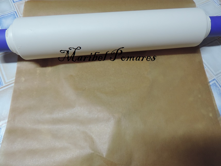 Tapamos con otro trozo de papel de horno y con ayuda del rodillo la extendemos bien.
