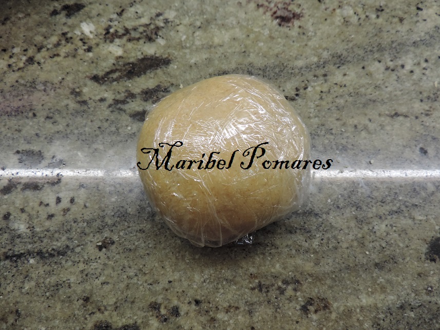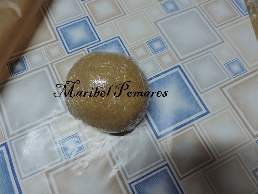 Sacamos la masa y la ponemos encima de un papel de plástico.