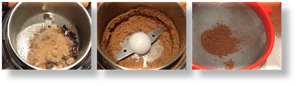 Con ayuda de un molinillo o picadora, muele los clavos de olor, el trocito de nuez moscada, la canela, la pizca de sal, y el jengibre. (Las especias molidas también las incorporas para que se integren bien todos los sabores).