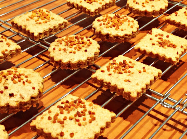 La primera "tanda" las hice de 4 mm de grosor y las decoré con unos granos de polen. La segunda las hice de 2 mm de grosor y decoré con sésamo tostado.