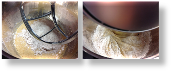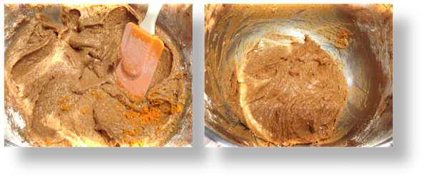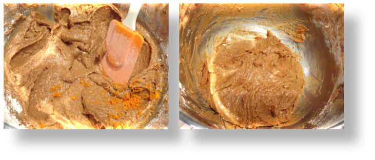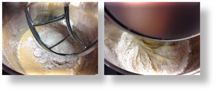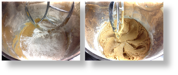 A continuación cambia el gancho de varillas (si utilizas amasarora) por la pala mezcladora. Si utilizas una batidora de varillas, continúa trabajando con el mismo gancho. Si lo haces manualmente, INTEGRA MUY BIEN con ayuda de una espátula de silicona.