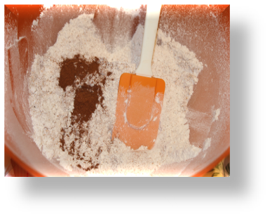 Incorpora en 2 VECES la mezcla reservada de harinas, canela, bicarbonato, sal y canela.