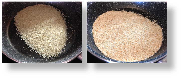 Si no tienes sésamo tostado, tuéstalo en una sartén hasta que tome un color dorado (sin pasarte) que con el horneado tomará más color.