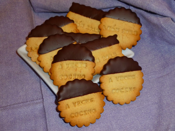 Después, cuando las galletas ya no quemen, ir mojándolas en el chocolate, dejar que escurra un poco y colocarlas en una rejilla hasta que el chocolate seque. Si mientras las vamos mojando se endurece el chocolate, puede calentarse de nuevo un poco en el microondas.