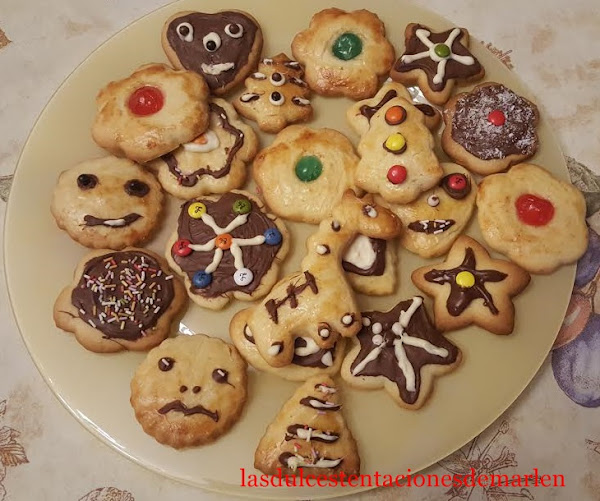 Extendemos la masa con la ayuda de un rodillo y la superficie enharinada, hacemos las diferentes galletas con corta pastas y las ponemos en la bandeja del horno con papel de hornear.