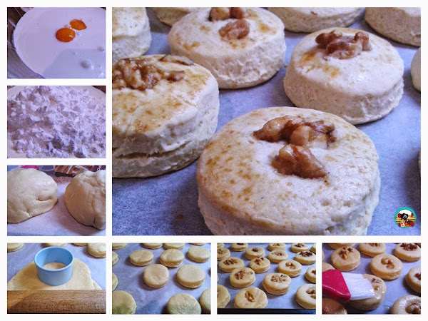 Galletas de nata (crema de leche) y nueces, elaboración: