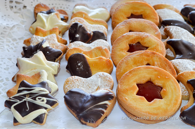 Las pastas dobles hay que hacerlas a 4 milímetros de altura. Se cortan igual y a la que va encima hacerle un corte central para que asome la mermelada después.