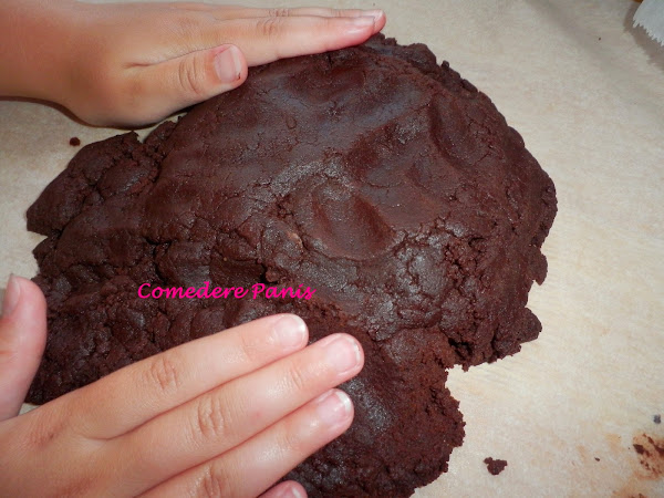 Aplastamos la masa con las manos para que se una, aquí podéis ver que he tenido una ayudante con sus pequeñas manos.