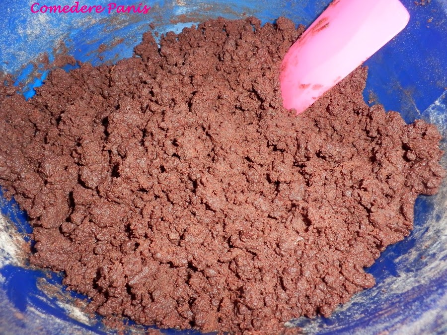Cuando la mezcla se halla incorporado volcamos la masa sobre un papel de horno.