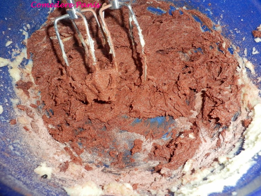 Añadimos la harina junto con el cacao y batimos a baja velocidad.