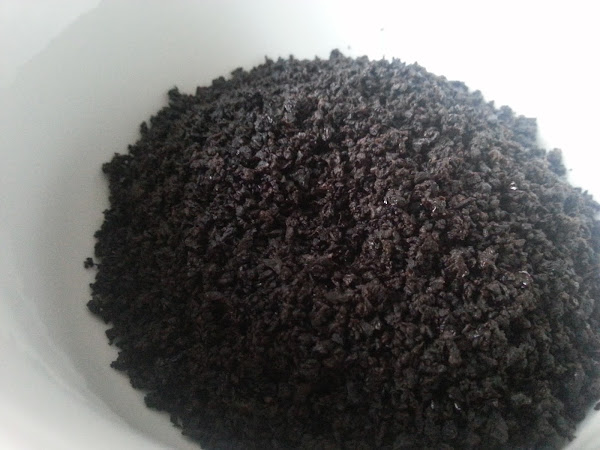 3. - Trituramos las aceitunas, o bien en la thermo, o en una picadora, hasta hacerlas como harina.