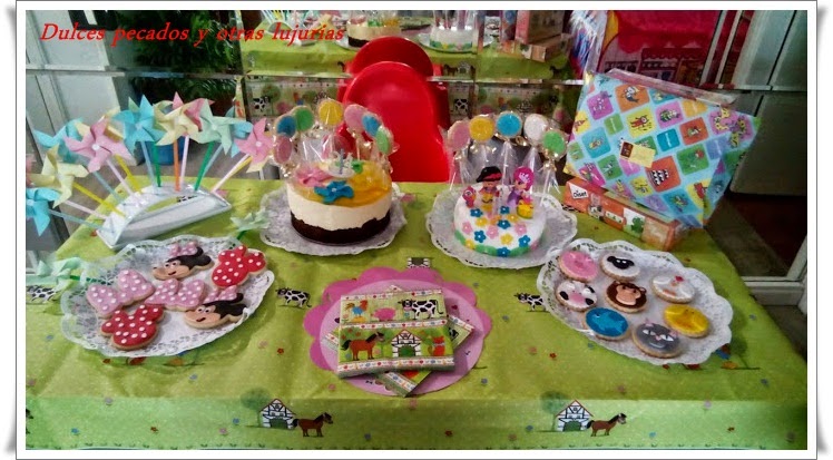Lo primero que quiero dejarles es la receta de las galletas que le hice a mis niñas en su cumpleaños. ¿Viste la foto en el facebook? ¿No? Pues esta fue la mesa que les preparé.