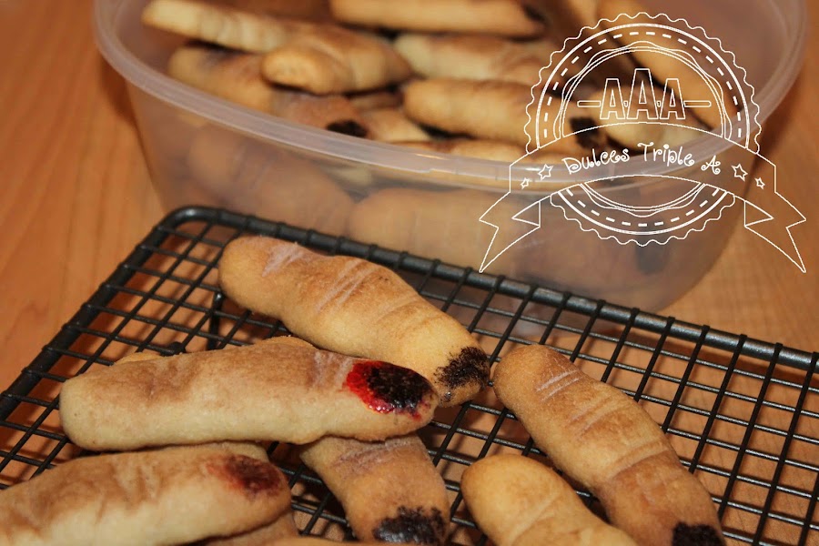 Y con estas galletas terminamos la noche más terrorífica del año, Halloween, no me voy a enrollar mucho porque es la masa de galletas que solemos utilizar, solo que le hemos dado formas de Dedos de Brujas, para hacerlos más divertidos para esta noche.Es muy fácil para realizar con los más pequeños de la casa, se divertirán muchísimo y tu con ellos.