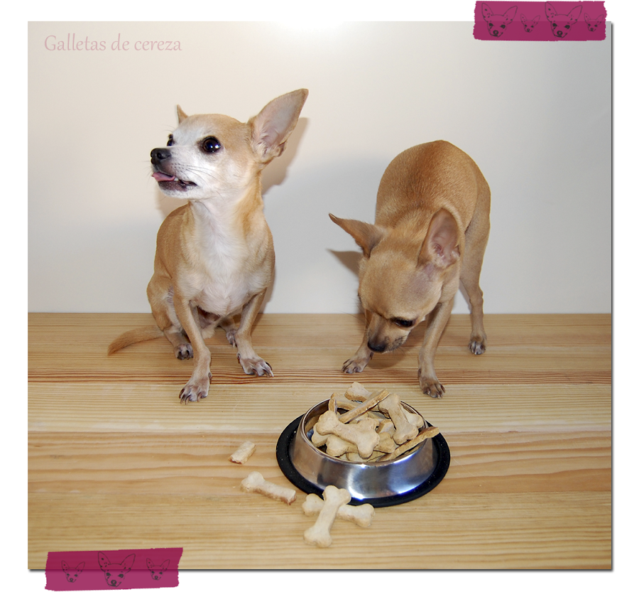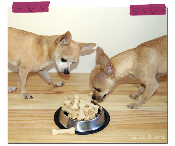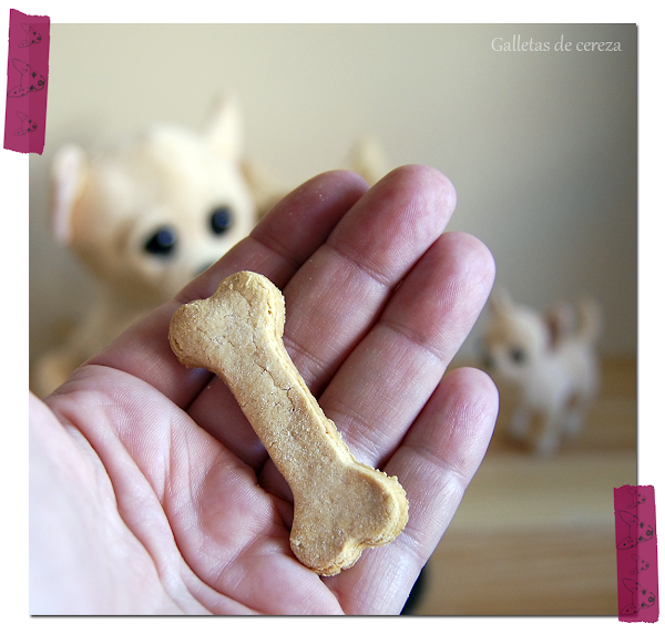 Nuestro pequeño Cookie hoy ha cumplido dos años y le he hecho unas ligeras galletas de plátano con forma de corazón y de hueso.