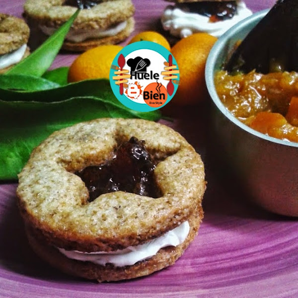 Hacemos un circulo con la nata (crema de leche). Rellenamos en interior con las mermeladas. Pegamos encima las agujereadas y las servimos.
