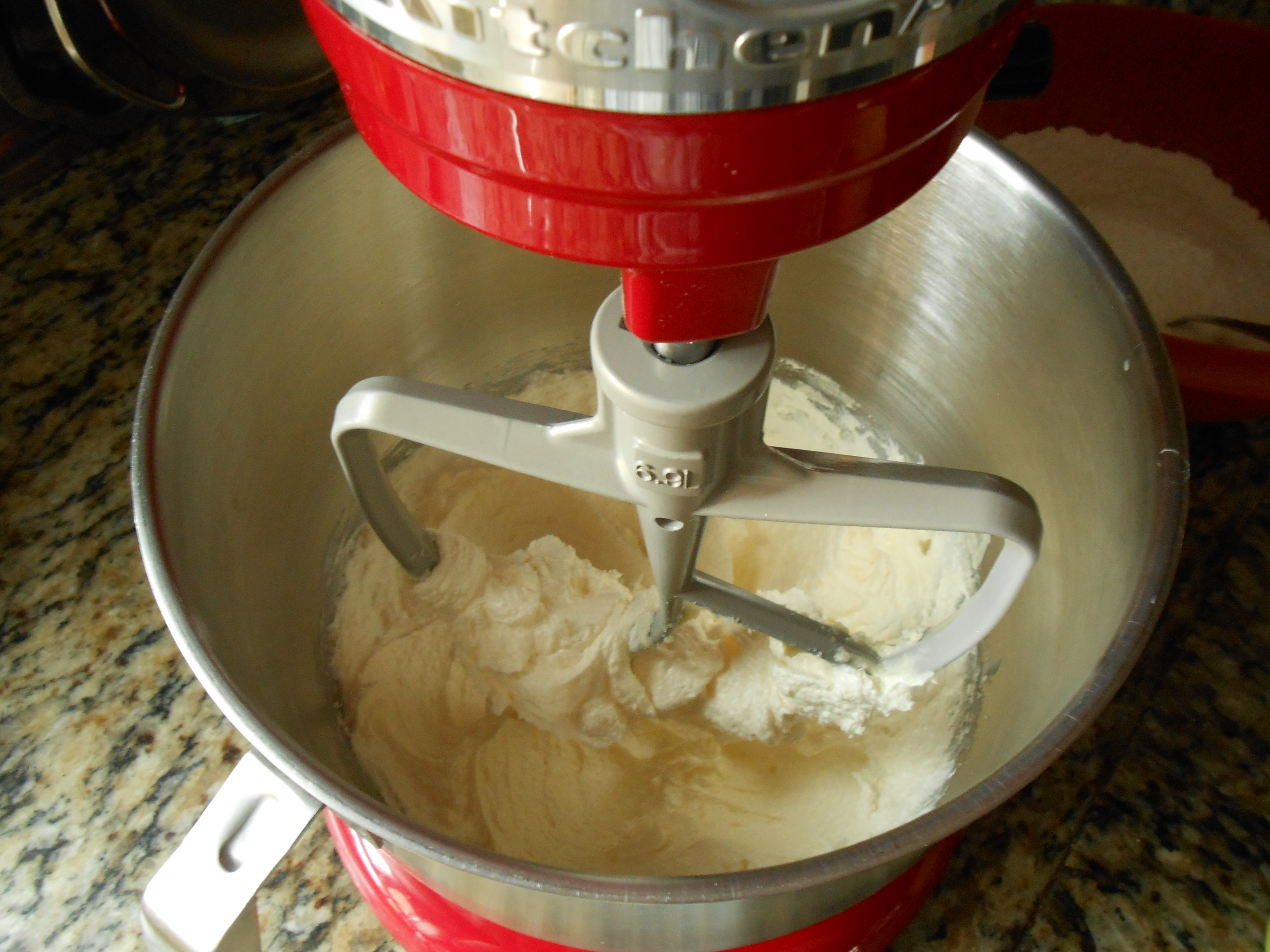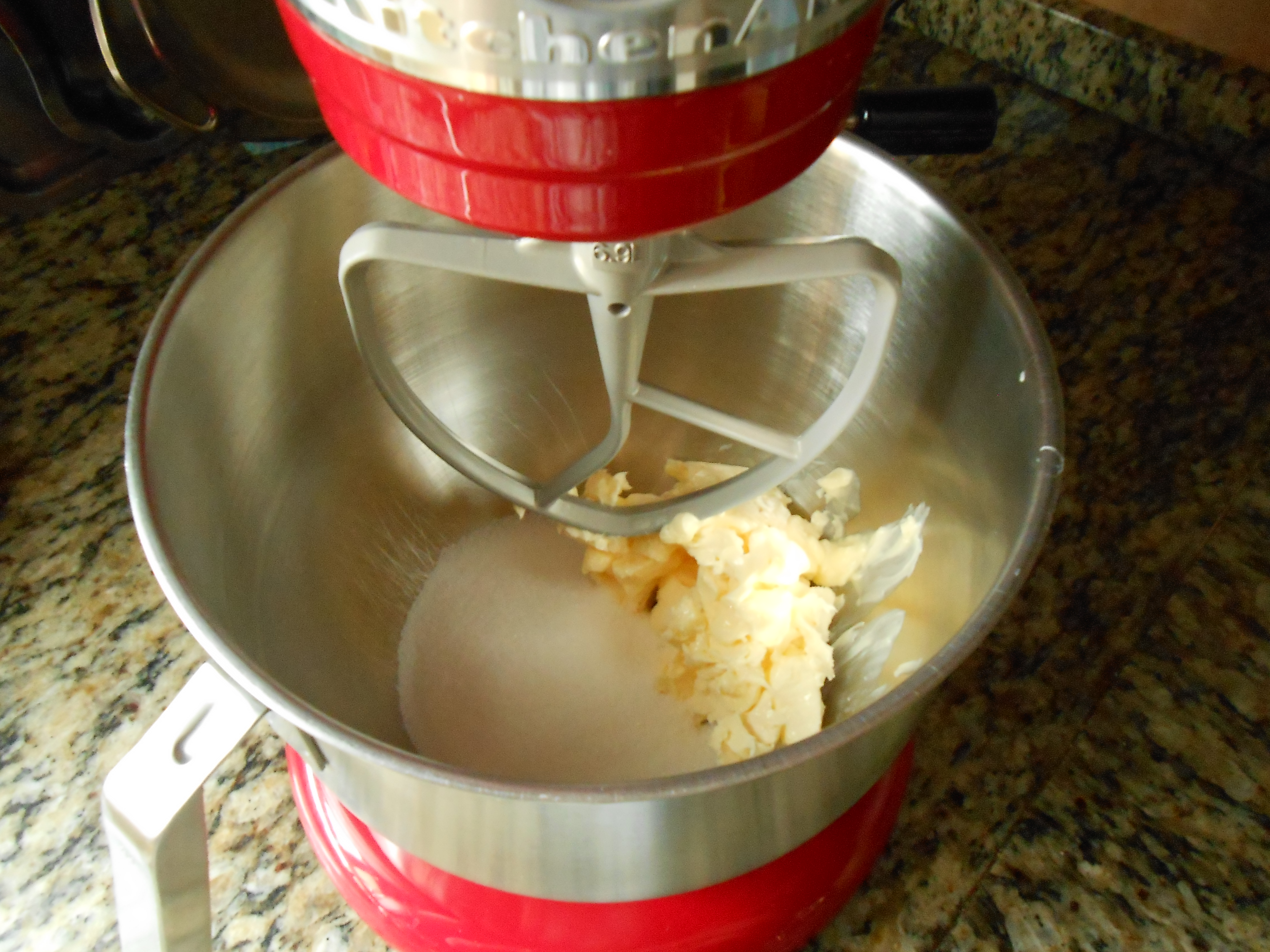Yo utilizo una amasadora, lo preparo con el accesorio de pala, pero sin ella es la misma preparación, se tarda más, pero simplemente hay que mezclar bien con una cuchara de madera o lengua.Echar en un bol la mantequilla blanda con el azúcar, mezclar hasta conseguir blanquear la crema.