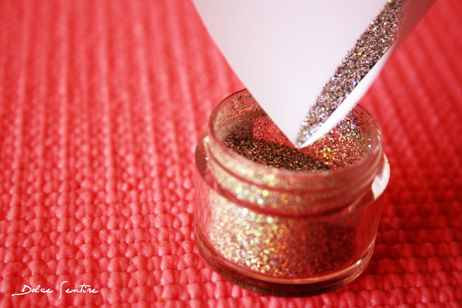 Y te preguntarás ¿porqué debemos usar este tipo de consistencia? Porque es la que mejor pega la purpurina. Créeme, lo he probado con consistencia stiff y no es lo mismo...