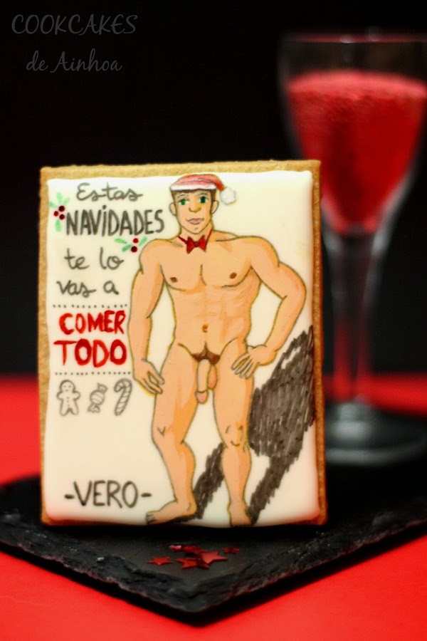 Pues resulta que, como cada año, realizamos en mi trabajo el amig@ invisible con los compis! Y cómo podía faltar una de mis galletas pintadas? jajaja De hecho, me tocó una amiga soltera, así que nada mejor que un chico muy sexy y... con todo al aireeee jajajajajajaja