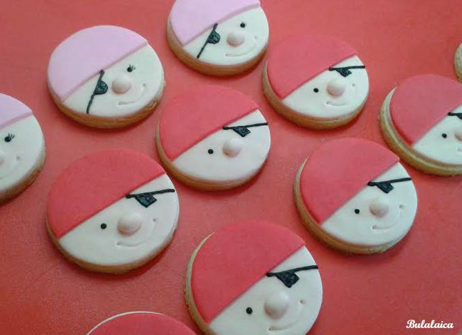 Y, con la ayuda de una manga pastelera, glasa de color negro para los ojos y parches, y color blanco para el detalle de los pañuelos.
