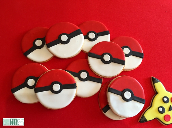 La fiebre Pokemon yo ya la pasé hace 20 años, madre mía fue total, todavía conservamos juegos de tazos con los pokemos, cromos, muñequitos ... se sabían todos los nombres; Así que, como la semana pasada fue Santa Marta, le hice unos Pokemonballs a mi chica mayor que se pasa el rato libre cazando Pokemons, quiere ser una mega entrenadora!, bueno yo no se muy bien como va eso, ni tampoco estoy por la labor, lo mio es hacerlo en galletas, la receta la tenéis en el post de "galletas veraniegas" de ayer, Los acabados con fondant, me gusta darles un poco de relieve.