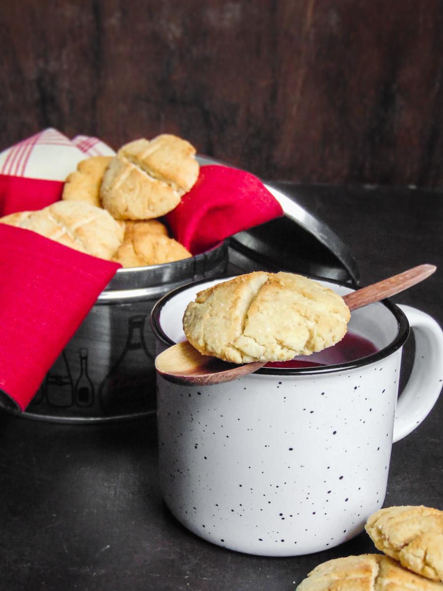 Así que lo intenté con una mezcla de harina de coco y harina de arroz o crema de arroz, y el resultado fue bastante bueno. Obtuve unas galletas muy frágiles, que se convierten en boronitas dentro de la boca y que tienen un sabor insuperable. Eso sí!!! les aclaro que por las características de ambas harinas (coco y arroz), las galletas pueden resultar un poco secas en boca, por lo cual hay que acompañarlas con una rica taza de té, café o un buen chocolate caliente. Diganme si esto no es un sacrificio TOTAL…..