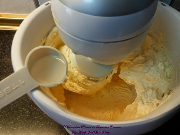 Cuando se integre, echaremos la cucharada y media de aroma de azahar.