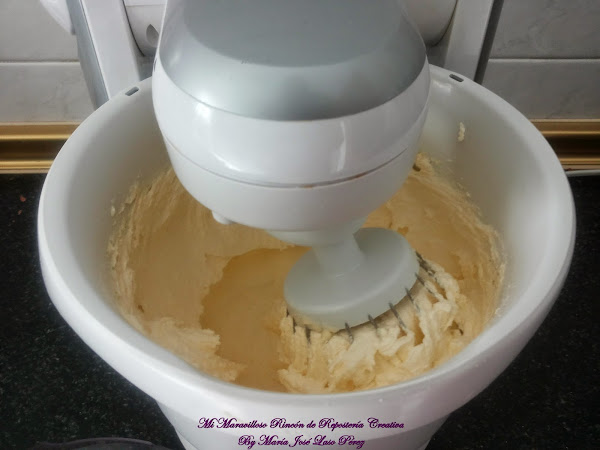 Cuando la mantequilla haya blanqueado, añadiremos el huevo que deberá estar a temperatura ambiente. Batimos unos minutos.