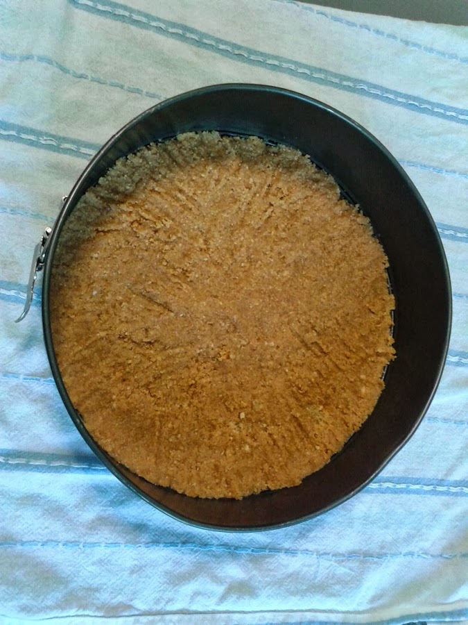 Fundimos la mantequilla, con 30 segundos en el micro suele ser suficiente, lo mezclamos bien con el picado de galletas y lo extendemos en el fondo del molde. Como molde podemos usar el que queramos, pero lo ideal es usar uno de aro desmontable. Una vez bien extendido lo reservados en la nevera, para que se vaya endureciendo.