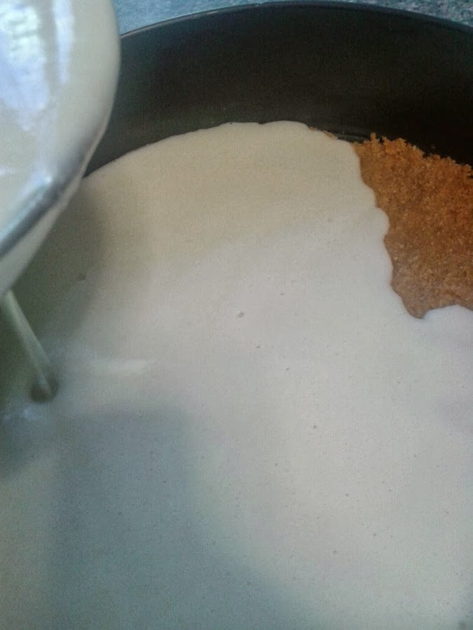 Una vez todo bien mezclado lo ponemos en el molde sobre la base de galletas y a la nevera durante unas 3 horas.