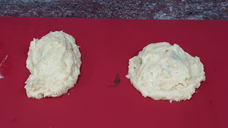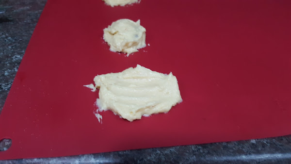 4.- Volcamos la masa en un bol y vamos poniendo porciones pequeñas en la bandeja de hornear, que serán la base de la galleta.