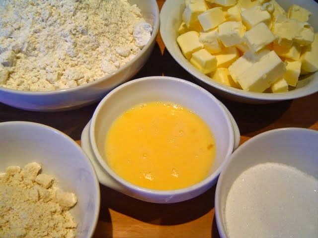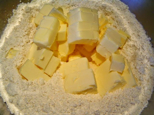 Mezclamos todos los ingredientes secos y añadimos la mantequilla fría cortada en trozos.