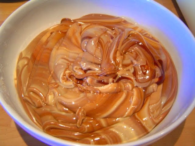 Derretimos el chocolate con la mantequilla, añadimos el praliné y