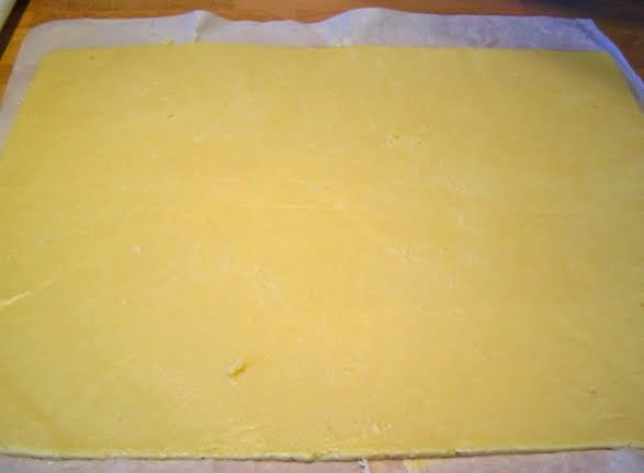 La masa se hace muy rápido y se estira entre dos hojas de papel de horno.