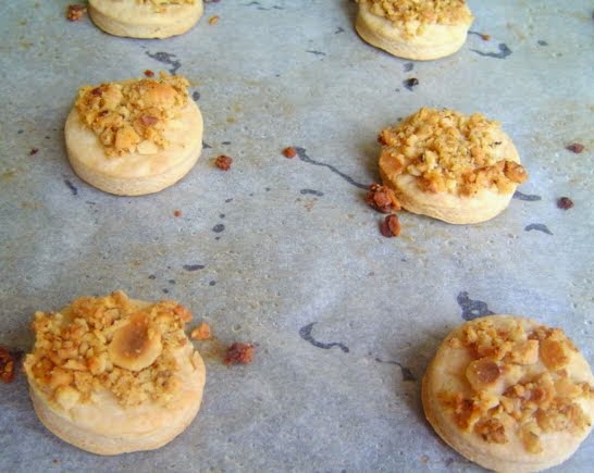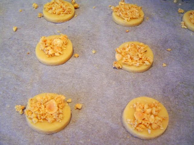 Pintamos las galletas con huevo, es opcional, y añadimos las avellanas troceadas,